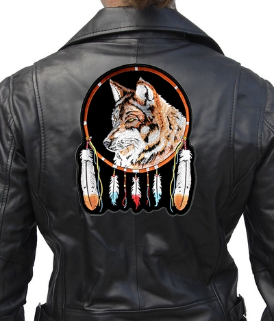 This is a great looking and unique patch. It features a fantastic looking native american dream catcher with a brown wolf in the center with colorful feathers hanging down . It is a very beautiful patch with lots of detail. A great looking patch.