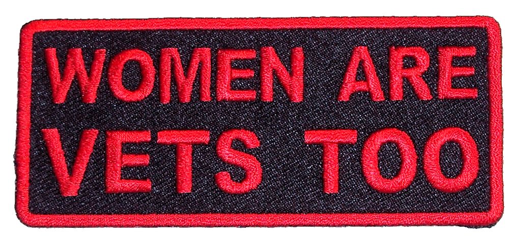 This patriotic looking ladies biker patch is top quality made. Features “Women Are Vets Too” in red letters. Can be sewn or ironed on. Great for leather or textile jackets, vest, hats, caps, whatever you can think of. Measures 3.75 inches wide by 1.75 inches high. A very cool patch.