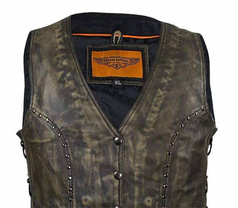 This listing is for a brand new, with tags ladies earth brown leather biker vest. Made of premium soft naked cowhide leather, it’s made by Dream Apparel. Long list of features are: